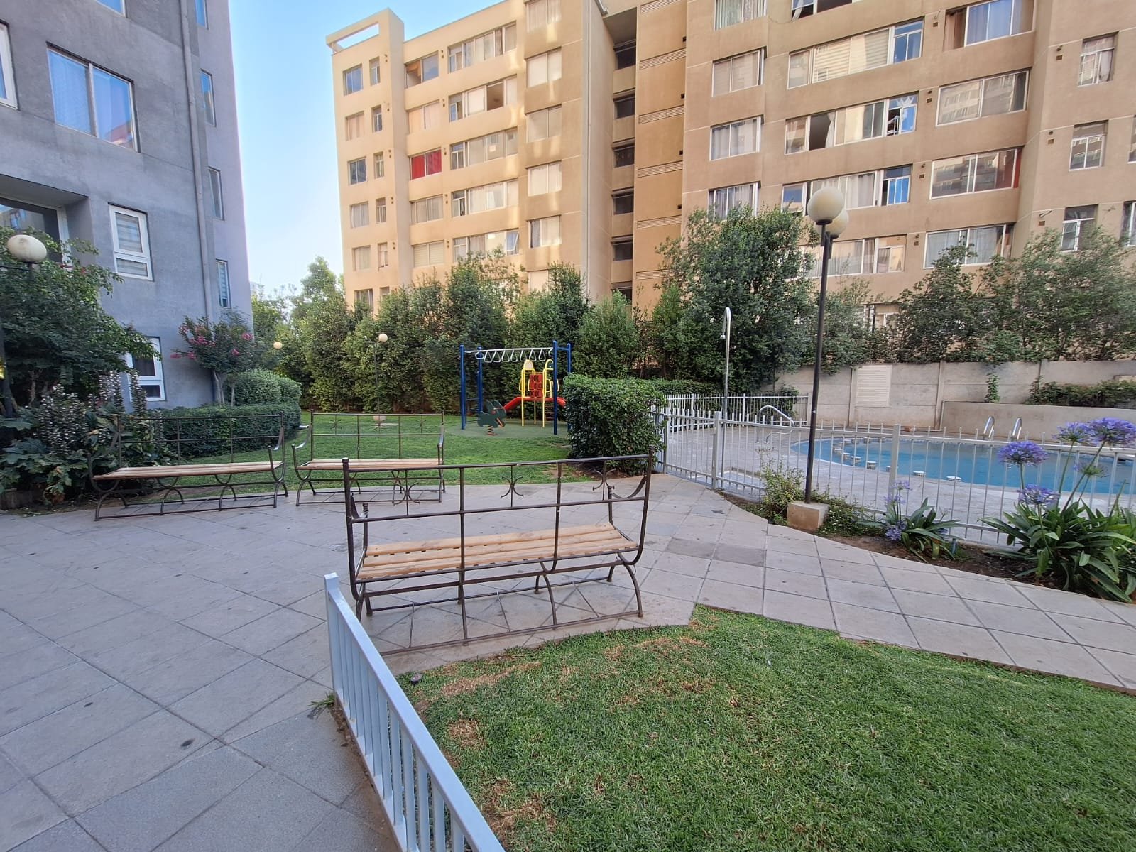 El edificio ofrece piscina para capear el calor y disfrutar en temporada ️️. Año de construcción 2000, con la solidez y espacios que se agradecen. Gastos comunes: $95.000 CLP aprox.
